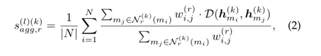 其中 是中心节点 在第k历元关系r下所有保留的邻居节点mj的集合。 为节点 和节点 在关系r下的边权值。
