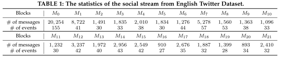 表 1:来自英语 Twitter 数据集的社会流的统计数据。