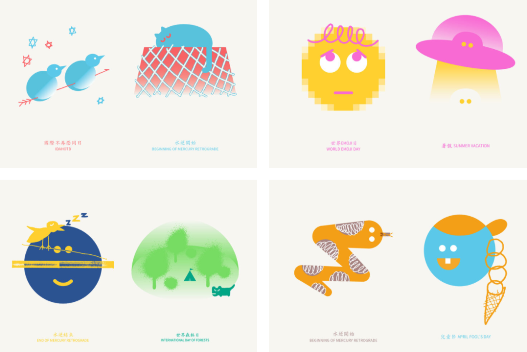 它们有夜市闪烁的霓虹紫、盥洗台上的牙膏粉绿、年节餐桌上的乌鱼子红、每天追着跑的垃圾车黄。受到这些来自生活中的色彩启发,《五金行日历》将它们如同基因符码般经过拆解排序,安置于每个年度,每个月份,每个我们习以为常但用尽全力过好的日子。