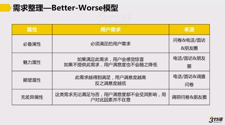这里划重点:保证必备属性——提升期望属性——提升魅力属性。