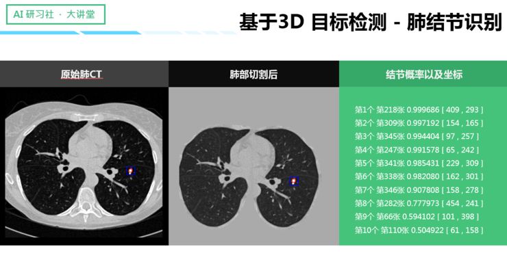 我们做得比较好的还有用于肺结节 CT 分析的 3D 目标检测,下面我也跟大家简单分享一下。