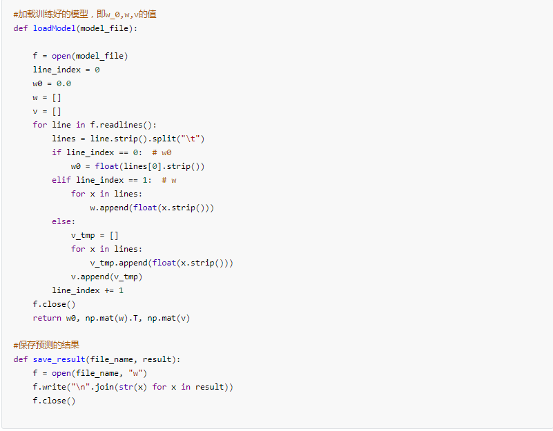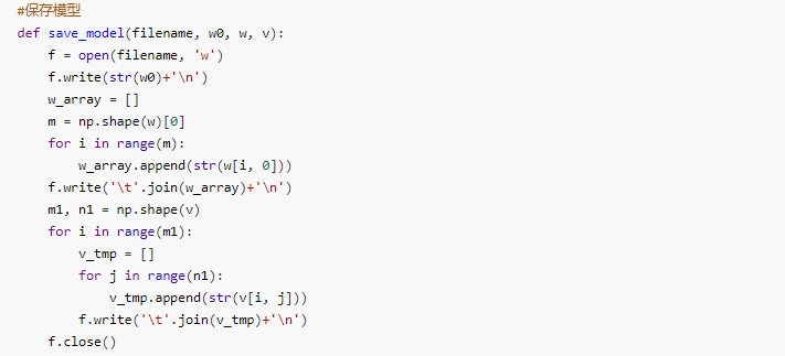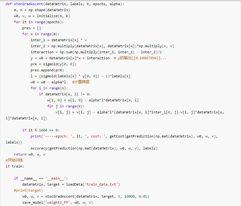 开始训练,并将训练得到的w_0,w,v保存在weight_FM中。