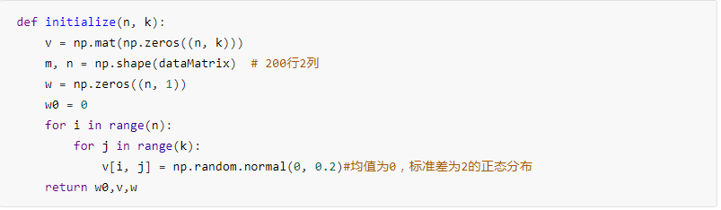 将v按照正态分布进行随机初始化,w与w_0初始化为0。
