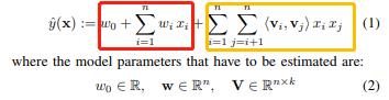 上图中,红色框部分就是传统的线性模型,黄色框部分为交叉项。