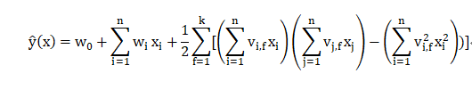 V中的行vi描述了具有k个因子的第i个变量。K是定义分解的维度的超参数,k 的大小称为 FM 算法模型的度。