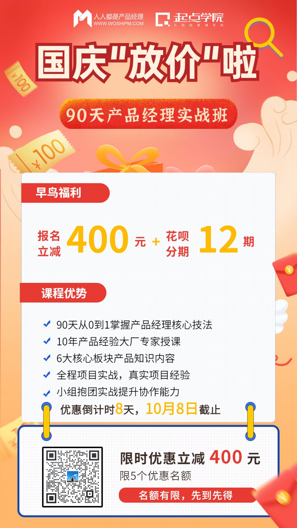 国庆假期小福利,叠加早鸟期报名课程立减400元!