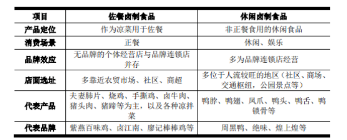佐餐卤制品与休闲卤制品的差异 资料来源:紫燕食品招股说明书,36氪整理