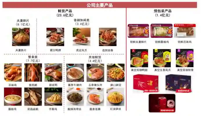 有别于卤制品市场主流的鸭副产品,佐餐卤味在食材和口感上更为丰富,主要涵盖鸡、牛、猪等肉类及素菜制品。紫燕食品的爆款产品夫妻肺片属于川味名菜,由于紫燕百味鸡的主市场分布在华东地区,紫燕根据不同区域和市场的饮食习惯差异,通过自制配方改良了口味,以便符合当地的饮食文化,因此成为了可全国化复制的大单品。紫燕食品的产品还包括百味鸡、藤椒鸡、甜皮鸭等整禽类产品,也兼具了甜、咸、辣等多种口味,以便消费者挑选适合的“下酒菜”。