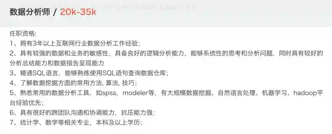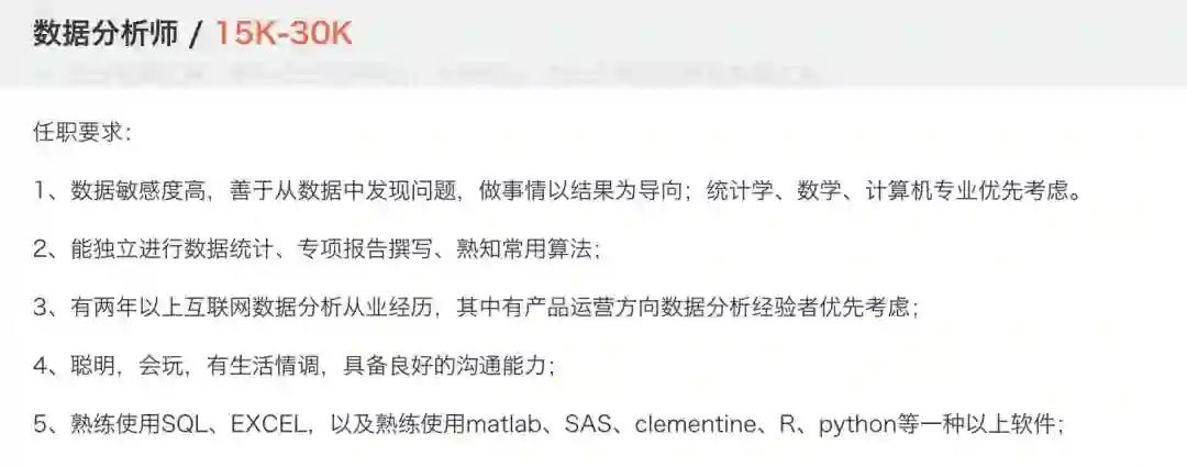 在国内,数据分析师年薪比同一个级别的其他职位高20%至30%;