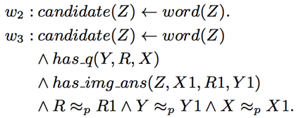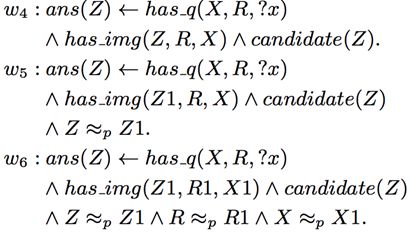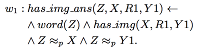 在此, 命题的权重w_i 是需要学习的部分. 而优化的目标是使得满足最多条件的正确答案的权重最高.