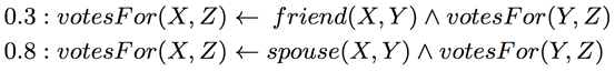 在推理过程中,使用了概率软逻辑, 来综合考量各种生成的事实. 其核心思想是: 由谓词和变元组成的命题, 真值不在局限于1或0(真或假), 而是可以在闭区间[0, 1]上取值. 一个简单的例子是: