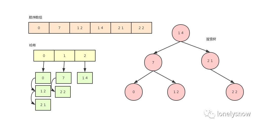对于 MySQL 数据库而言,数据是存储在文件里的,而为了能够快速定位到某张表里的某条记录进行查询和修改,我们需要将这些数据以一定的数据结构进行存储,这个数据结构就是我们说的索引。回忆一下我们大学里学过的算法与数据结构,能够支持快速查找的数据结构有:顺序数组、哈希、搜索树。