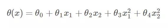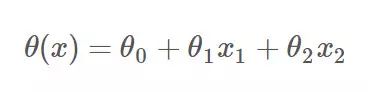 Sigmoid函数的图像是一个S型,预测函数就是将sigmoid函数g(x)里的自变量x替换成了边界函数θ(x),如下: