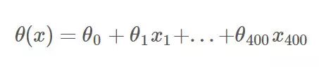 假设我们现在要解决的是识别图片中的0或1(样本库只有0和1的图片),图片大小是20*20,那么这个时候有400个特征向量,那么边界函数为: