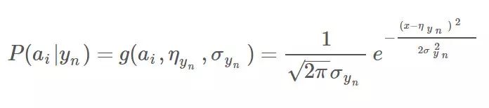 其中,ηyn和σyn分别为训练样本yn类别中ai特征项划分的均值和标准差。