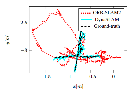 图1 RGB-D例子下DynaSLAM的结果