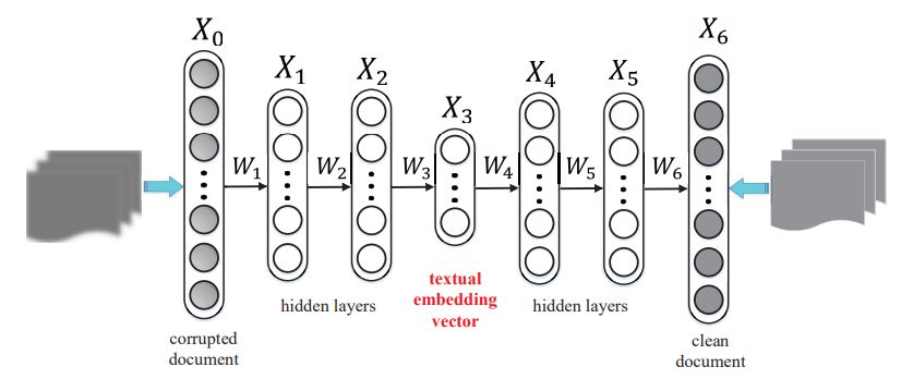 文本知识学习:去噪自编码器。去噪自编码器可以学习得到文本的一种泛化能力较强的向量表示;