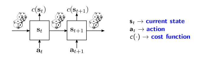 这些系统的抽象图如下所示。系统的当前状态被表示为s_t并且与每个状态s_t相关联,同时存在一个由函数c(•)给出的成本c(s_t)。在每个时间步中,我们应用一个操作,这将在下一个时间步s_t + 1时影响系统的状态。