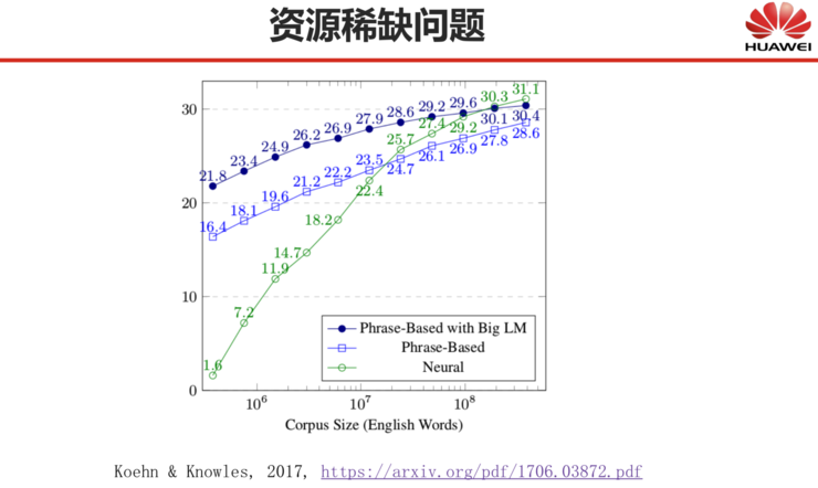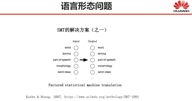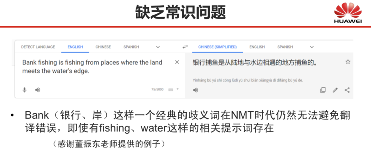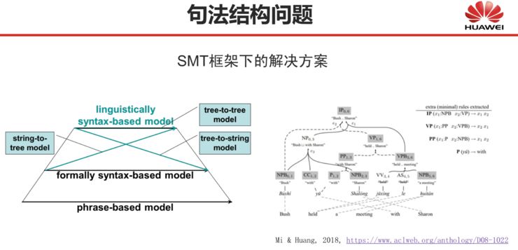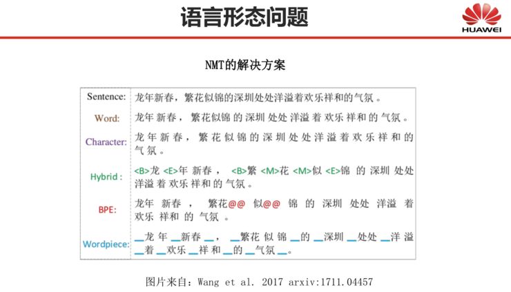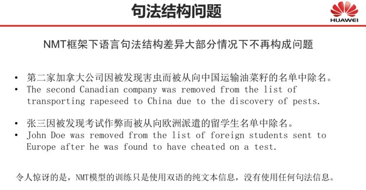 自然语言处理领域有很多难题,此前研究者费了好大劲去解决的问题,深度学习方法出现以后,一些问题被很好地解决了,或者虽然还没有彻底解决,但是提供一个很好的框架。这些问题主要包括:词语形态问题、句法结构问题、多语言问题、联合训练问题、领域迁移问题以及在线学习问题。这里我主要讲下前四个问题,不对后两个问题进行展开。 词语形态问题 词语形态问题,即 Morphology,研究的是词的构成。在中文中,它体现在词的切分上,在英语等大部分其他语言中则主要体现在形态的分析上。其中词语切分在包括机器翻译在内的中文信息处理中,曾是一个非常令人头痛的问题,我们也花了很多精力去解决。 在基于规则和基于统计的机器翻译方法下,词语形态分析是机器翻译首先需要解决的问题。 对于中文而言,由于基于汉字的翻译效果很差,因而分词是必须解决的问题,也就是说如果不做分词或分词做得不好,即便用统计方法,效果也会很糟糕。然而分词本身又面临很多问题,因为中文词语本来就不是一个定义很明确的单位,导致分词缺乏统一的规范,分词粒度难以把握。 而中文以外的很多语言都存在形态问题,其中英文的形态问题比较简单,因为英语词的变化比较少。而很多其他语言的变化是很多的,例如法语有四五十种变化,俄语则更多。另外以土耳其和波斯语为例的黏着语,一个词可能有上千种变化,即一个词后面可以加很多种词缀,这对于自然语言处理尤其是机器翻译而言,是非常棘手的。 而且对于这些形态丰富的语言而言,分析的难度也很大,一般只有语言学家才能把词语的形态说得比较清楚。同时,形态本身其实是一层结构,所有统计机器翻译都建立在某种结构的基础上,例如词语层、短语层、句法层,或者说基于词的、基于短语、基于句法的方法,那如果想在这些结构中再加入一层形态结构,统计机器翻译的建模就会变得非常困难。 在统计机器翻译时代,复杂形态的语言处理非常困难,对此有一个比较著名的方法叫做 Factored statistical machine translation,即基于要素的翻译方法,就是将一个词分成很多要素,然后分别翻译每个要素,最后汇总起来。不过我很不喜欢这个方法,因为我认为它不够优雅,且非常冗余,效果也不是很好。 然而语言形态这个问题在神经网络框架下就基本不成问题了,这个领域的研究者对中文分词的讨论也不太多了,虽然也有一些关于如何在神经网络框架下将词分得更好的探索,我也看到过几篇挺有意思的相关文章,但是对于机器翻译而言,中文分词已经构不成根本性挑战了,因为现在机器翻译基本上可以不做分词了,大部分中文机器翻译系统基本上基于汉字来实现,性能跟基于词的系统比没有太大区别。 针对形态复杂的语言,现在提出了一种基于subword(子词)的模型或基于character(字符)的机器翻译模型,效果也非常好。我认为这是一个统一且优雅的方案。 自动化所张家俊老师,他们的一篇论文就介绍了基于子词的模型方案的解决思路,如下图所示,第一行是标准的中文,第二行是做了分词以后的。现在一般系统基于汉字即可,就是第三行,但是我们也可以做分词,比如第五行做BPE,将“繁花似锦”分成“繁花”、“似”、“锦”这三个子词部分。 基于字符的模型则是从字母的层面来做,对英文一个字母一个字母地建模和翻译,翻译效果也非常好。所以我认为在神经网络框架下,形态问题基本上不是什么太大的问题。 句法结构问题 下面看句法结构问题。 无论是在基于规则还是基于统计的机器翻译框架下,句法分析对机器翻译的质量都起着重要的影响作用。其中在基于统计的机器翻译中,基于短语的方法获得了很大成功,因此现在大部分统计方法都不做句法分析。 但是对于中英文这种语法结构相差较大的语言而言,做句法分析要比不做句法分析的结果好很多,所以句法分析还是很重要的。不过句法分析难度很大,一方面会带来模型复杂度的增加,另一方面句法分析本身存在的错误会影响翻译的性能。 而目前在神经网络机器翻译框架下,神经网络可以很好地捕捉句子的结构,无需进行句法分析,系统可以自动获得处理复杂结构句子翻译的能力。 大概 2005-2015 年期间,我一直在做基于统计的机器翻译,也就是研究如何在统计方法中加入句法方法,在这么多年的研究中,我们提出了很多种方法也写了很多篇论文,下图中的这些模型概括了我们之前提出的那些方法。 我们的工作主要聚焦于树到树、树到串的方法。美国和欧洲很多学者在做串到树的方法,树到树的方法做得都比较少。另外我们还做了一些森林方法的研究,即如何避免句法分析错误。不过,这些问题在神经网络框架下基本上也不存在了。 举例来说,“第二家加拿大公司因被发现害虫而被从向中国运输油菜籽的名单中除名”是一个好几层的嵌套结构,但是机器翻译的结果“The second Canadian company was removed from the list of transporting rapeseed to China due to the discovery of pests”在结构上翻译得很好。下面一个例子在结构上也没有什么错误。 神经网络机器翻译方法是没有用到任何句法知识的,仅凭从网络中学到的复杂结构就能实现这么好的效果,这样的话,对机器翻译来说做句法分析就没有太大意义了。当然句法结构并不是完全没有意义,现在也有不少人在研究,但是我认为这已经不再是机器翻译的一个主