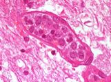 研究显示,肿瘤性淋巴细胞迁移受抑与IVLBCL发病机制有关,IVLBCL的分子表达虽可使肿瘤细胞粘附于内皮,但却无法逸出血管,这对鉴别IVLBCL和弥漫大B细胞淋巴瘤很关键。逸出血管受抑机制与IVLBCL多种缺陷有关,值得进一步研究。感染与IVLBCL的关系仍不清楚,EB病毒和HTLVI病毒可能与之有关。