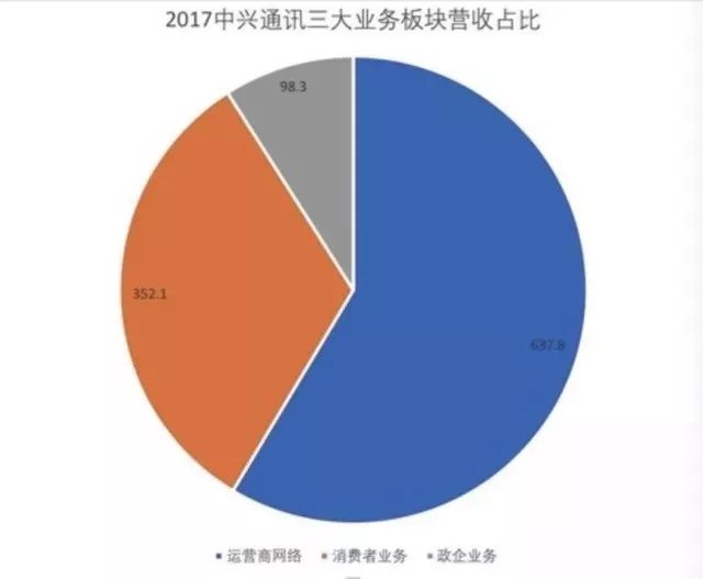中兴通讯以通信设备制造起家,后为拓展电信运营商市场逐步进入手机制造领域。根据其2017年年报来看,以通信设备为主的运营商网络营收占总营收的58.6%,而以手机业务为主的消费者业务占比为32.4%。