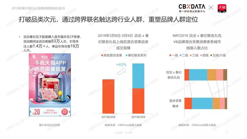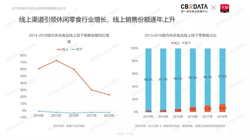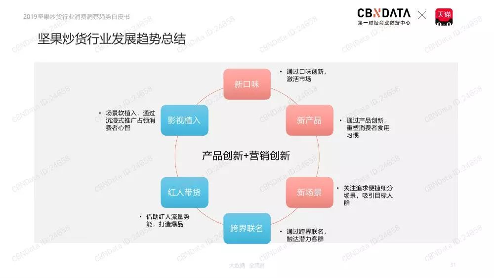 坚果类食品市场位列休闲食品规模第二,释放千亿市场。天猫平台坚果炒货行业稳定发展,占据淘系坚果炒货行业主体地位。