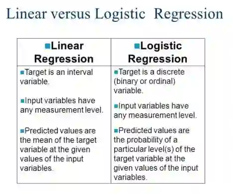 逻辑回归结果在许多方面都可以与线性回归结果对比,可以发现对于结果概率给出了更准确的预测,而线性回归则能准确地从因变量中预测连续值。