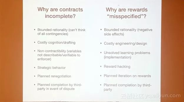 谈话的核心问题是如何利用不完全契约理论的见解来更好地理解和系统地解决AI安全中的规范问题,这是一个非常有趣的研究方向,客观规格问题似乎比不完整的合同问题更难。