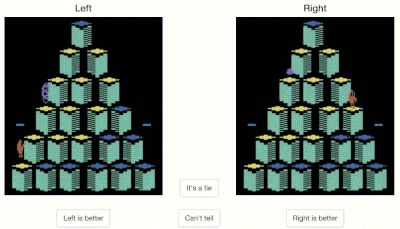 来自人类偏好的深度RL(Christiano等人)是指利用人类反馈来教授深度RL代理人理解关于人类可以评估但可能无法证明的复杂事物(例如后空翻)。人类创造了代理行为的两个轨迹片段,并选择出哪一个更接近目标,这种方法可以非常有效地利用有限的人类反馈,使代理人学习更复杂的事物(如MuJoco和Atari所示)。
