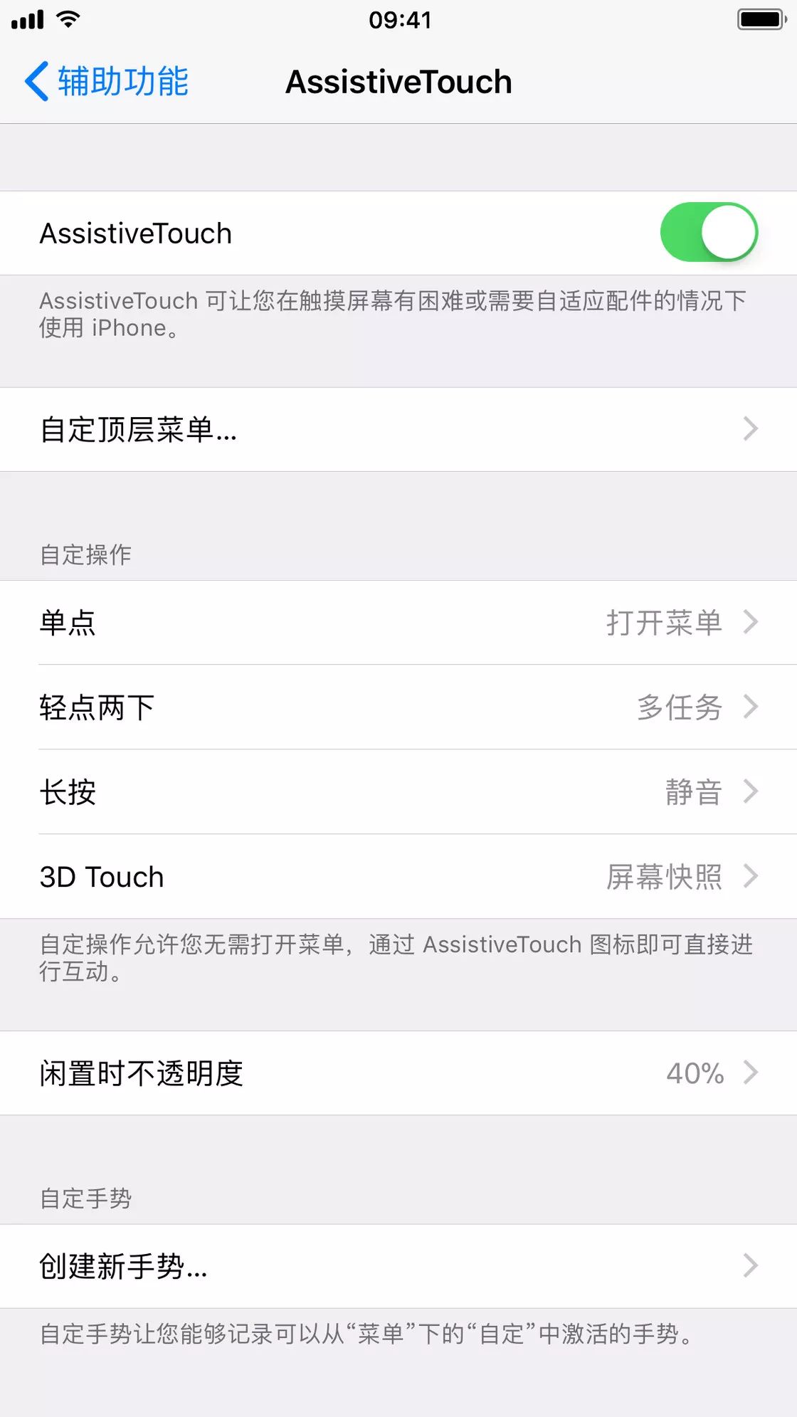 在最新版本的 iOS 11 测试版中,你可以在系统设置中对小白点(AssistiveTouch)分别设置单击、双击、长按、3D Touch 的手势功能,也就是说不用每次都打开小白点菜单,就能快速实现你想要的操作。