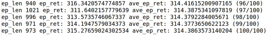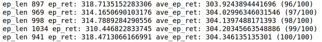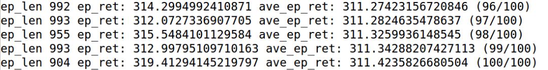 训练时保存AverageTestEpRet得分最高的模型即可。我们训练好的模型保存在createamind/DRL/saved_models中,跑sac1_test.py脚本即可看Test的效果。