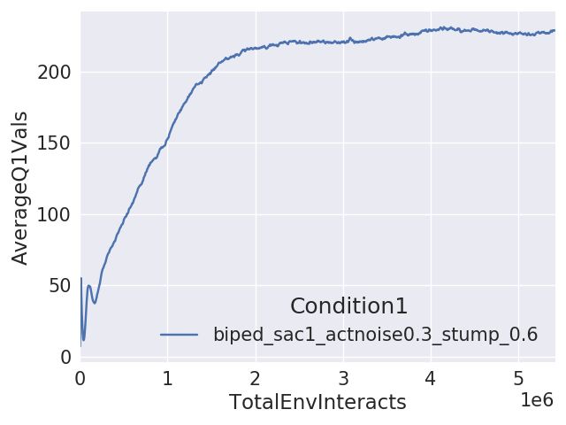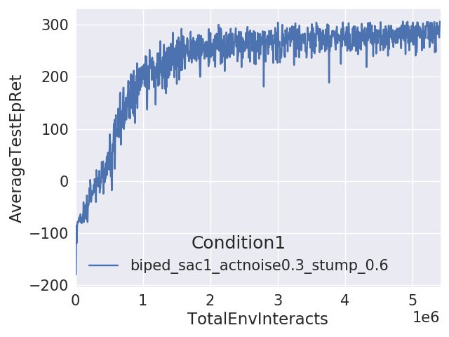 为此,我们采用state-of-the-art的model-free RL算法sac1来解决'BipedalWalkerHardcore-v2', sac1是基于sac(Soft Actor-Critic)算法的改进,精简了网络,引入了自适应训练熵权重。