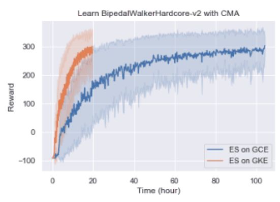 对于CMA-ES算法,因为算法效率比较低,我们没有尝试。下图是查阅到的训练情况数据: