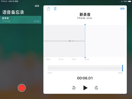 录音是语音备忘录的最基本功能,这里除了 UI 有所改变,其他基本和旧版本没多大区别。