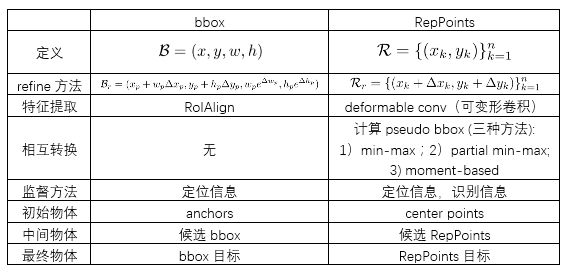 最后用下表总结 bounding box 和 RepPoints 在物体表示上的联系和区别:
