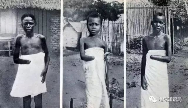 利奥波德二世统治刚果期间,殖民者会把黑人奴工的妻儿扣留下来,如果奴工完不成规定的任务,就会对他们的妻儿进行鞭笞、砍断手脚等惩罚。有报道称在二十年间刚果减少了一千多万人口。