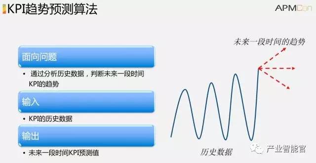 我们再分解一下,刚刚提到了异常检测的一种思路是基于KPI趋势预测。KPI趋势预测就是通过时序数据的算法能预测出来KPI将来一段时间是什么样的,取什么值,常见的算法有ARIMA、EWMA、Holt-Winters、时序数据分解、RNN等。主要挑战包括突发事件的影响、节假日的影响、数据不规则的影响,最重要的就是大家对异常的定义不一样,会有主观的因素,最后导致这些算法很难调。