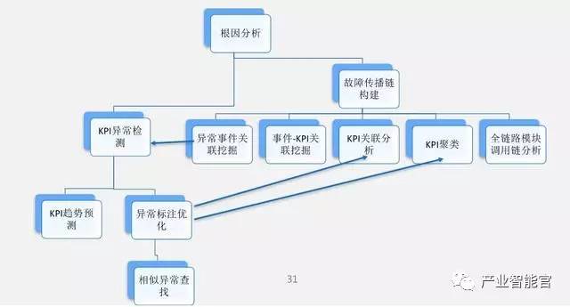 假如说我们有这样的故障传播链,同时又对事件有很好的监测和准确的报警,那根因的分析就简单了。因为只需要顺着故障传播链各个报警找,找到最后一个就是根因。这其中有两个关键的步骤,一个是KPI异常检测,另一个是故障传播链,下面会详细介绍这两部分。