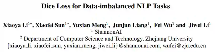 Dice Loss for Data-imbalanced NLP Tasks》,论
