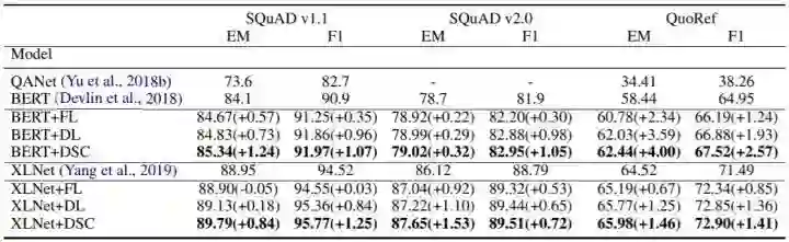 无论是对BERT还是对XLNet,DSC都有显著的提升。