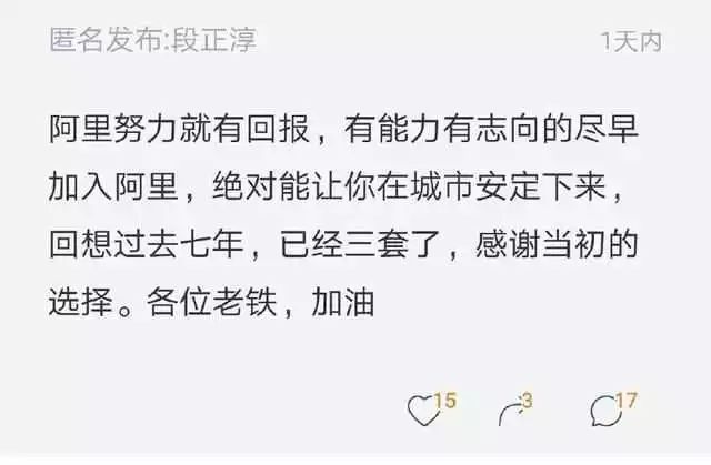 又到了阿里员工一年一度发年终奖的日子,据科技大爆料(大鱼号)爆料有一名在阿里工作七年的老员工在某网络社区发帖感谢公司,称通过在阿里的工作收获了三套房产,自己以后还要努力奋斗,争取获得更多的财富。