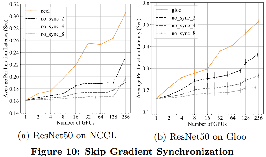这些实验表明,不用等到每个梯度 tensor 都可用时再启动 AllReduce,DDP 在等待较短的时间并将多个梯度存储到一个 AllReduce 操作中时,就可以实现更高的吞吐量和更短的延迟。