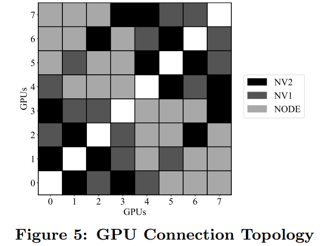 下图 5 展示了一台服务器上 8 个 GPU 的互连方式: