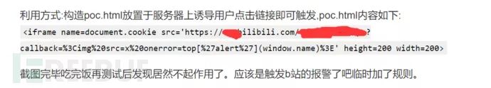 (6) 由于可以控制标签,也就是说可以对b站的waf规则做一遍深入的探测,同时可能利用的姿势也会很多,也可能利用多种编码以及特殊字符等等,但fuzz的工作量也会增多,这里的重点是对waf规则的探测分析与针对正则层面的bypass,因此就不继续下去了。