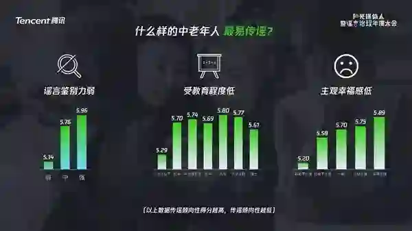中老年人传谣的主要原因:谣言鉴别能力差、受教育程度低、主观幸福感低。相比于城镇中老年人,农村的中老年群体更有可能传播谣言。