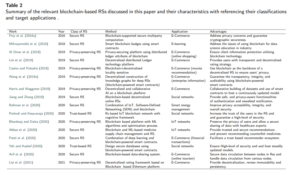 本文在两个研究领域(即区块链和推荐系统)之间建立了一座桥梁,它们可以显著地互相受益。本文为基于区块链的推荐系统的研究人员创建了一条研究路径,包括挑战、开放问题和解决方案,并说明了主要的应用领域。