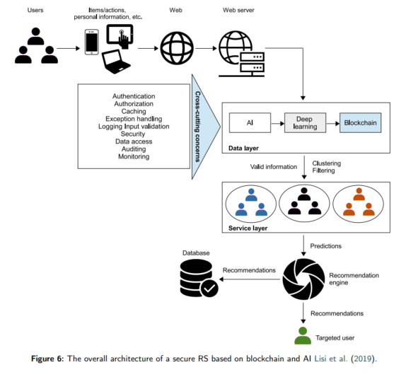 基于区块链和人工智能的安全推荐系统的整体框架如下: