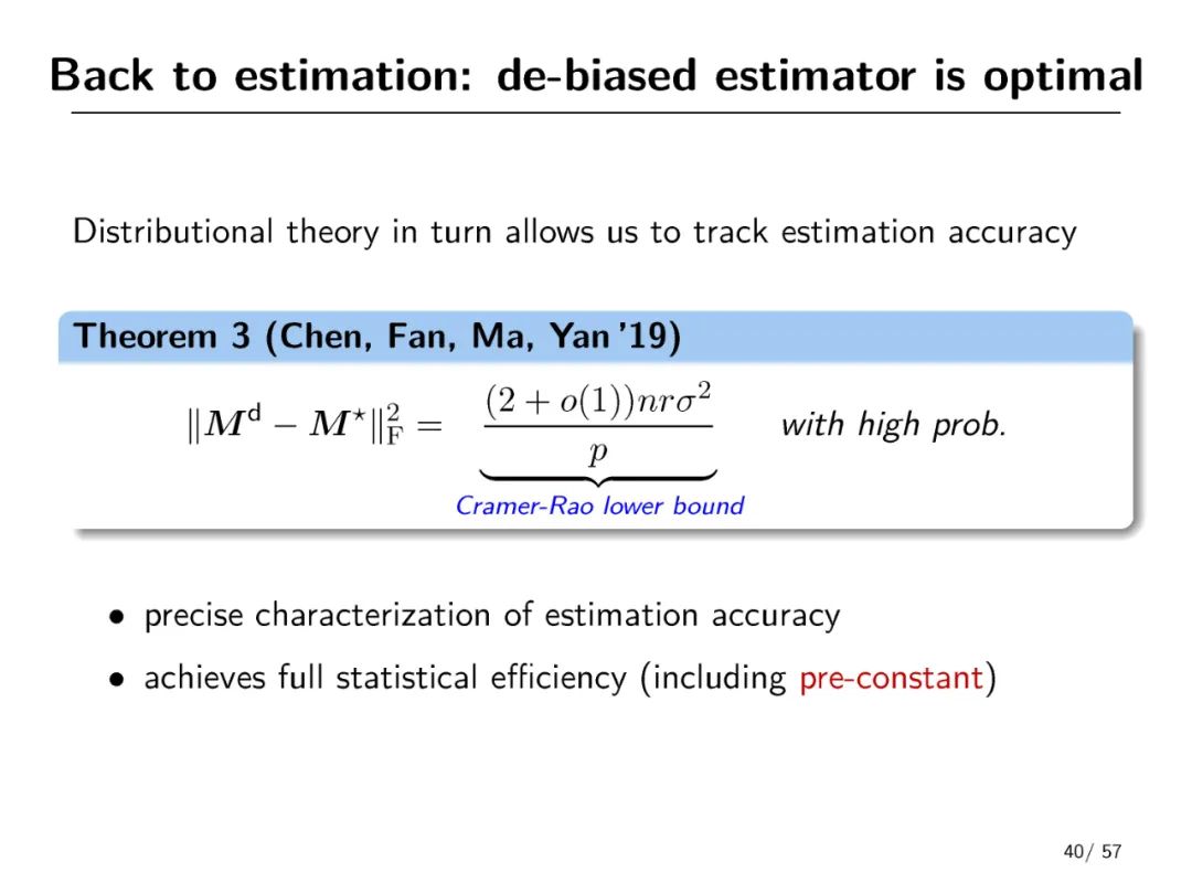 近年来,利用非凸优化方法来解决统计估计和学习问题的研究工作层出不穷。由于非凸优化算法易受虚假局部极小值的影响,传统工作通常对其持悲观看法,而简单的迭代方法,如梯度下降法,在实践中已经取得了显著的成功。然而,直到最近,这些理论基础在很大程度上一直缺乏。这个报告展示了两个最近关于非凸统计估计的故事,它们强调了统计模型在实现有效的非凸优化中的重要作用。第一个故事是关于一个相位检索问题的随机初始化非凸方法:即使没有仔细的初始化,像梯度下降这样的简单算法也可以在对数迭代次数内找到全局解。第二个故事是关于非凸低秩矩阵补全的不确定性量化。我们在非凸估计的基础上开发了一个去偏估计器,使未知矩阵缺失项的置信区间能得到最优构造。所有这些都是通过一个“一留一出”的统计分析框架实现的,该框架在处理和解耦复杂的统计依赖方面非常强大。