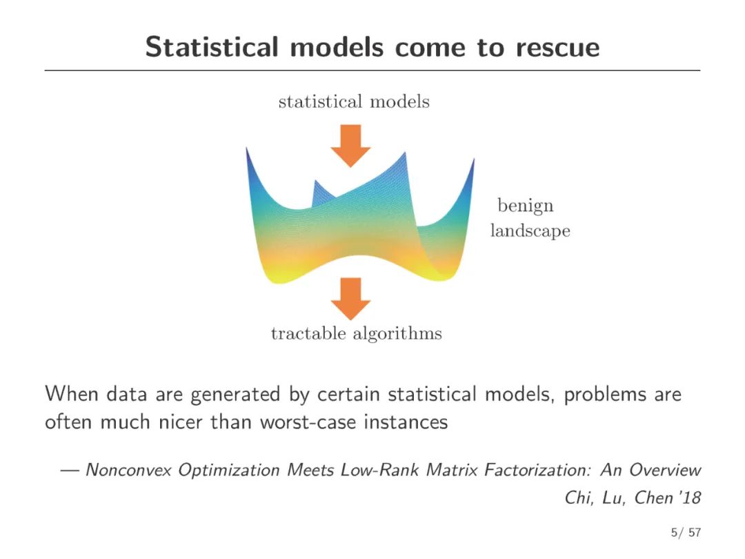 非凸优化是机器学习中的基础问题,迭代优化方法缺乏理论支撑。普林斯顿大学助理教授Yuxin Chen一直从事非凸优化方面的研究,这份报告讲述了最近关于非凸统计估计的故事,它们强调了统计模型在实现有效的非凸优化中的重要作用。