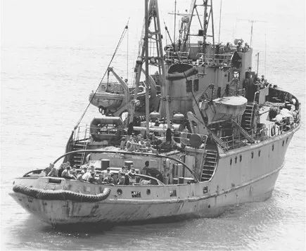 也是在7月23日,早上4点08分,雷达发现不明船只靠近。到8点50分,目视发现不明船只是苏联拖网渔船SB-10号。之前说过,苏联人没有那么雄厚的资本,所以大量的情报收集工作都是靠“拖网渔船”来完成的。这一次,苏联人玩的还是老一套,除了从几十米的位置上近距离观察,SB-10再次占据了洋流下方,尝试收集HGE的垃圾,从中挖掘出有价值的信息。(补充说明:在20世纪70年代,环保意识远没有今天这样强烈,当时船只在海上是可以随便丢垃圾的,如今已经不行了)。